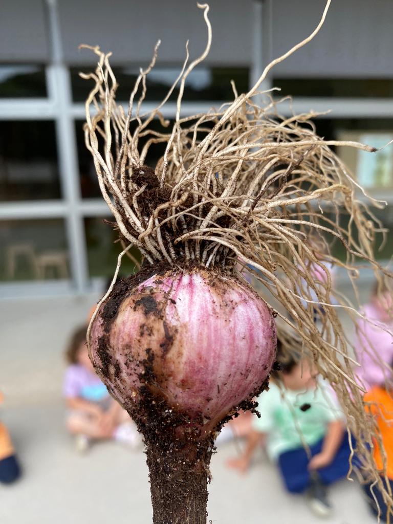 Els/Les alumnes més petitons del centre van plantar fa setmanes alls i faves i els van estar regant perquè creixessin. I aquest dimecres, després de dies conreant la terra, ja han tingut resultats!