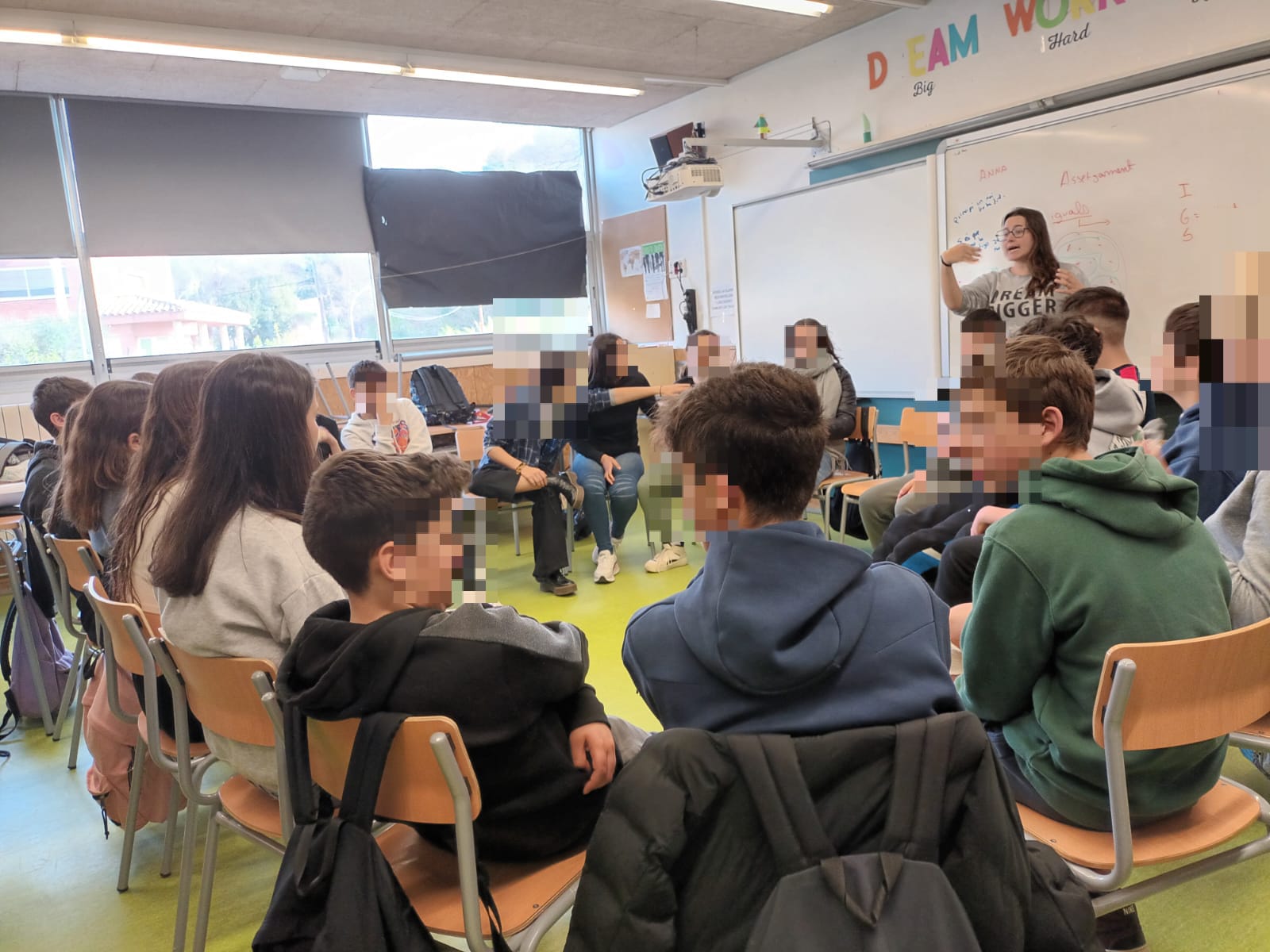 La setmana passada va tenir lloc la sessió sobre ciberassetjament i defensa digital, mentre que aquest dilluns han tingut lloc dues noves propostes: a 2n d’ESO s’ha parlat, reflexionat i debatut sobre alcohol i begudes energètiques, mentre que l’alumnat més gran del centre ha aprofundit sobre les conseqüències i riscos del consum de cànnabis.