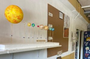 Han portat molts llibres per investigar i, a més, dos companys de 3r han creat una maqueta per veure quins són els planetes que giren al voltant del Sol! Moltes gràcies, A i L!