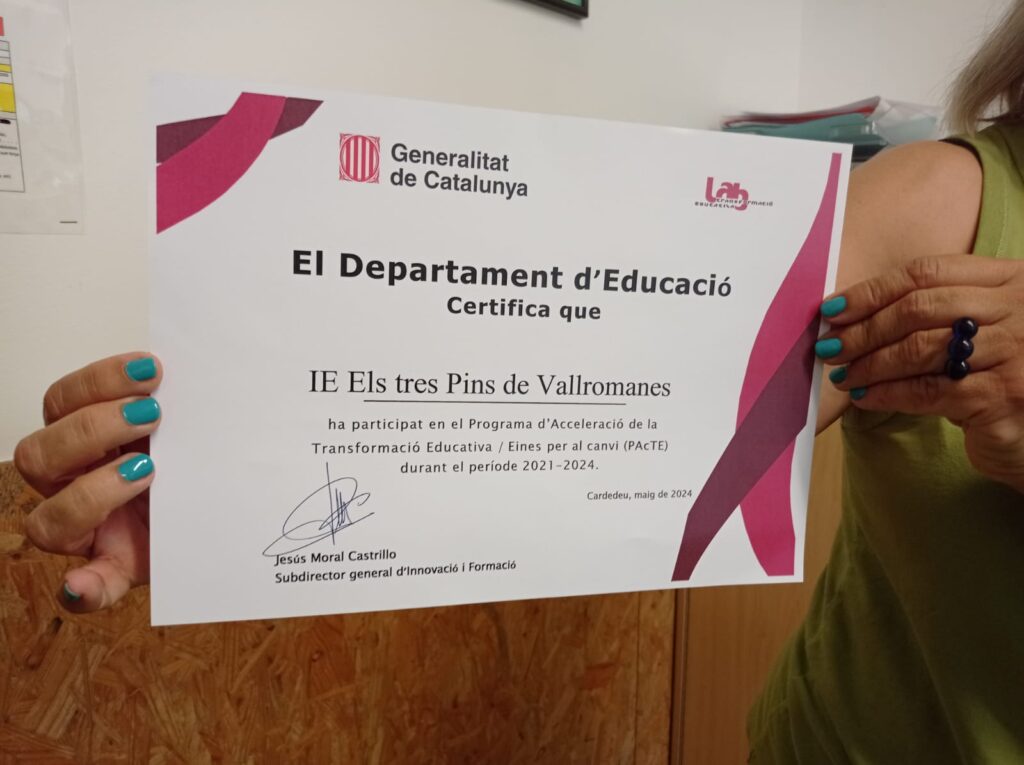 - L’IE Els Tres Pins ha participat en el Programa d’Acceleració de la Transformació Educativa / Eines per al canvi (PAcTE) durant el període 2021-2024.