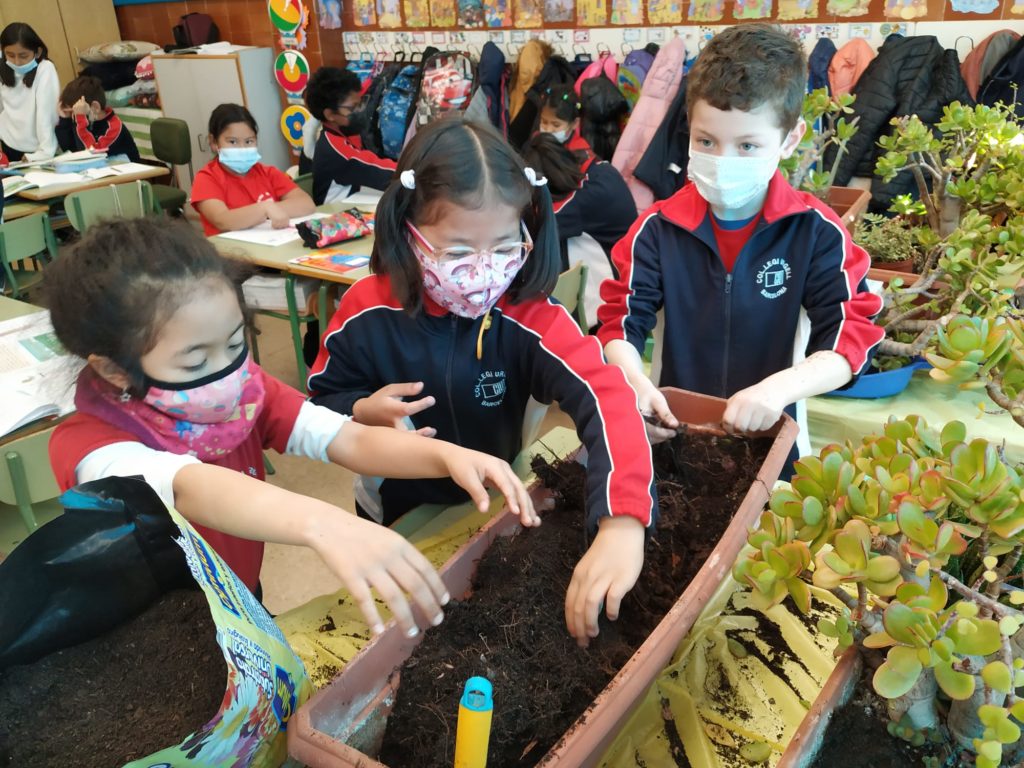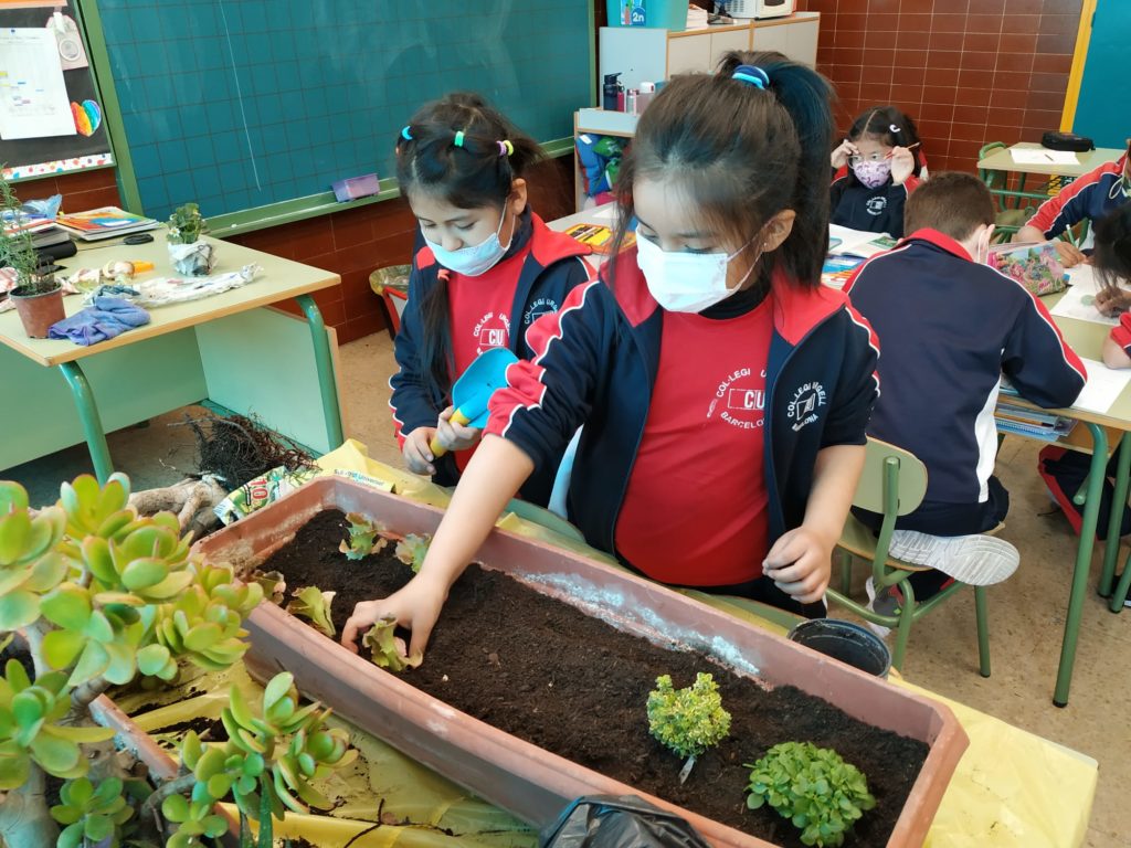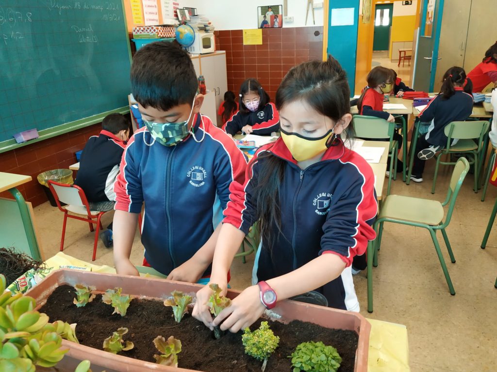 Com hem estat treballant les plantes i gràcies a l’aportació d’una mare de la classe, ens hem atrevit a començar un petit hort a les jardineres.
