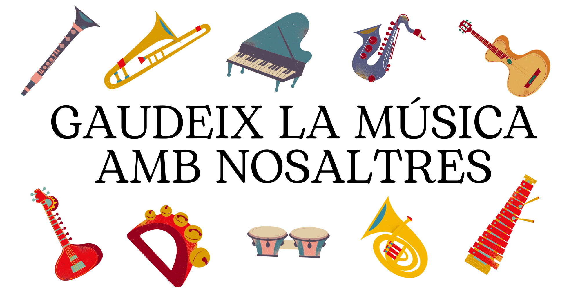 Flyer A4 anuncio instrumentos musicales coloridos fondo blanco (297 × 150 mm)