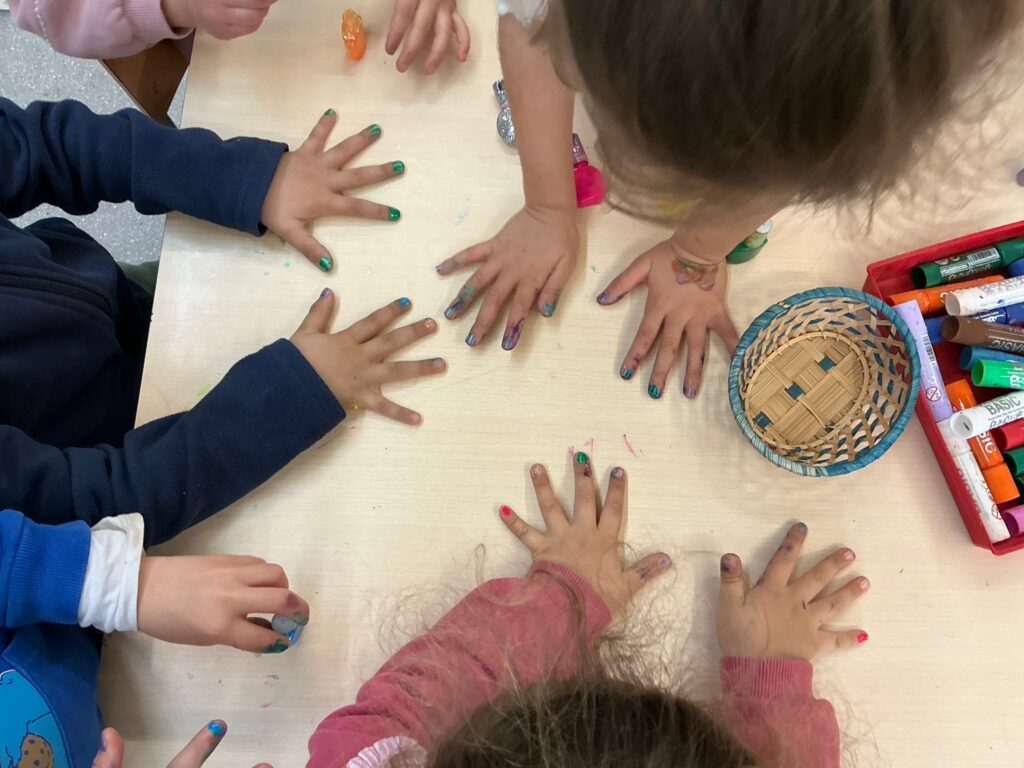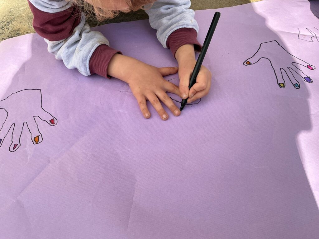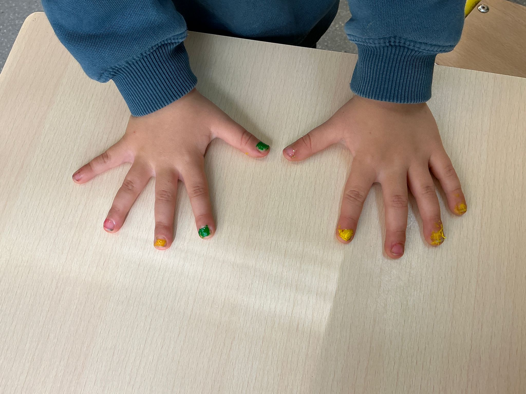 A l’aula d’I4, els infants han gaudit de la lectura del conte Visca les ungles de colors, que ha servit com a punt de partida per conversar sobre la importància de respectar la identitat de cadascú i la llibertat d’expressar-se tal com som. Posteriorment, han participat en la creació d’un mural col·lectiu, dibuixant el contorn de les seves mans i decorant les ungles amb una gran varietat de colors.