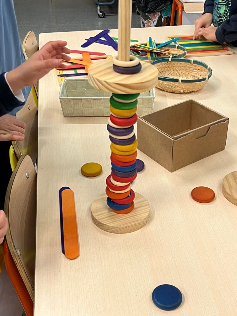 Durant el desenvolupament del projecte, han treballat continguts relacionats amb la llum i el color, les construccions, els sentits, l’aire, el moviment i el desplaçament, així com les classificacions i els patrons.