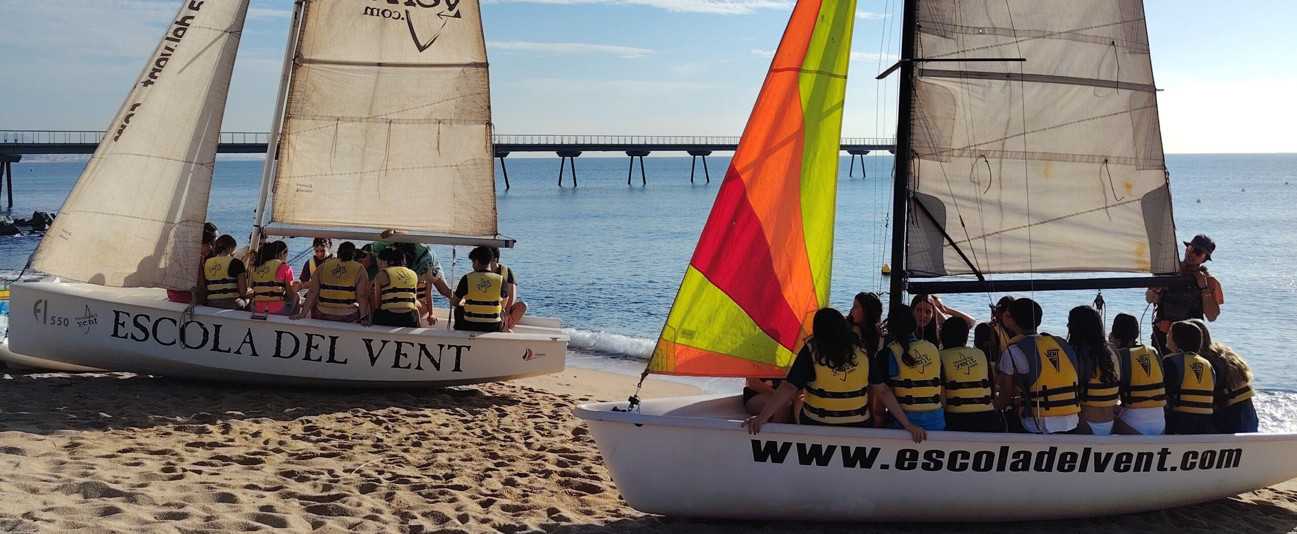 Els alumnes de 1r de Batxillerat passen una jornada assolejada practicant diferent esports aquàtics, com ara caiac, vela, pàdel surf o big pàdel a l'escola del vent de Badalona.