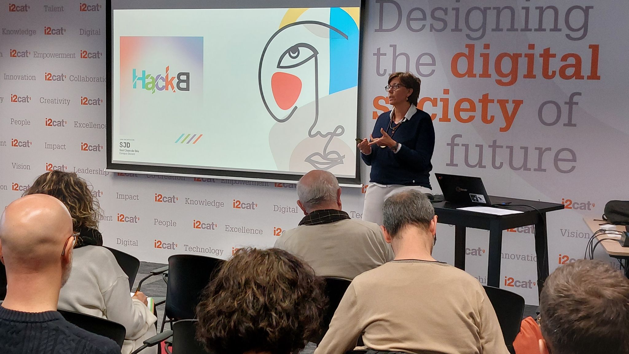 🔹Carme Rovira Riera, responsable del Campus Docent Sant Joan de Déu, ha compartit l’experiència de l’HackB, un hackató on equips multidisciplinaris desenvolupen solucions creatives per a reptes de benestar, integrant la inclusió, la perspectiva de gènere, el dret a la informació i la sostenibilitat.