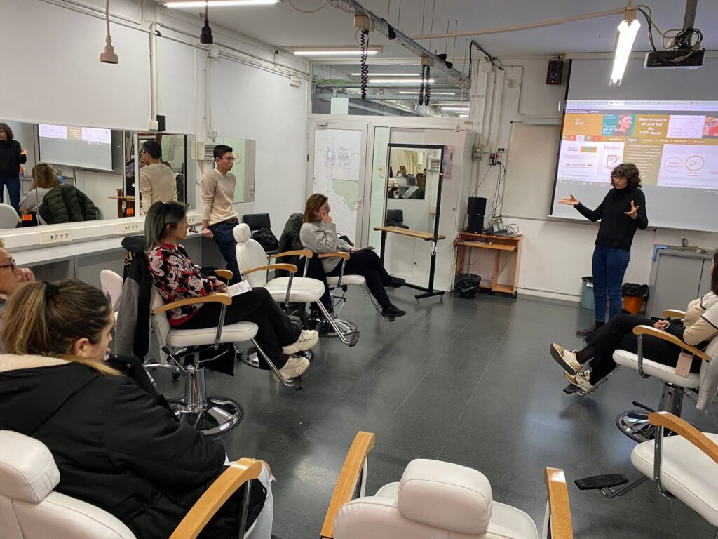 Aquesta trobada es va realitzar amb la finalitat de presentar a les empreses del sector de la Imatge Personal les estades d’FP dual per tal que, a partir del curs 2023-24, acullin alumnes de l’institut en aquesta modalitat.