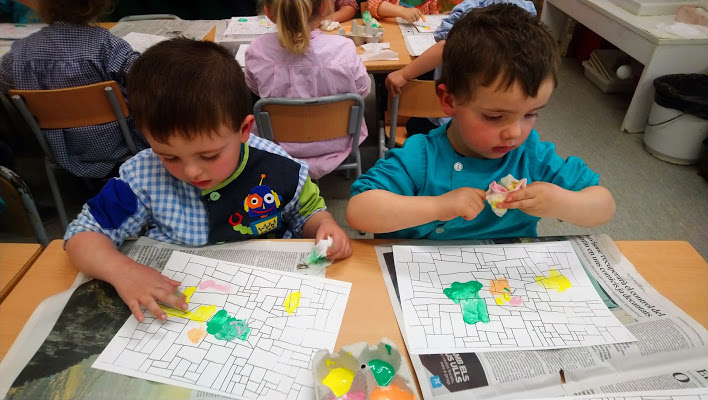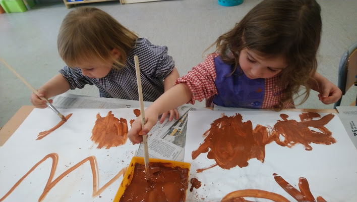 Aquesta tarda, després de descobrir què era el fang, hem pintat amb ell. Al principi hem provat de pintar només