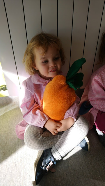 Aquesta tarda l’Íngrid ens ha portat una gran sorpresa: una pastanaga gegant que ha fet la seva mare (la Lali).
