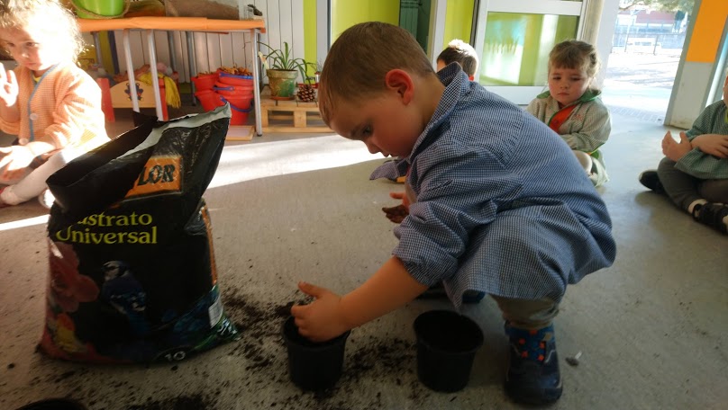 Com cada dimarts i dijous, a l’hora del pati anem a jugar a l’espai de l’hort. Aprofitem per regar les