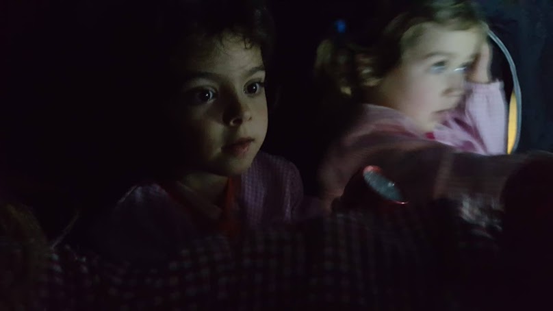 Aprofitant que aquesta tarda estava força ennuvolat hem experimentat amb la foscor. Hem dibuixat i jugat amb la taula de