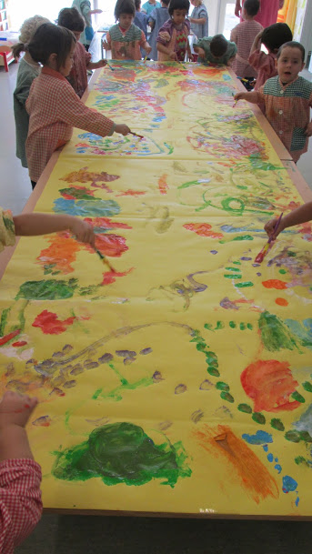 Avui hem pintat amb pinzells. Hem fet un mural per decorar el suro que tenim a la classe. PINZELLS