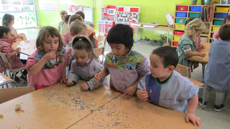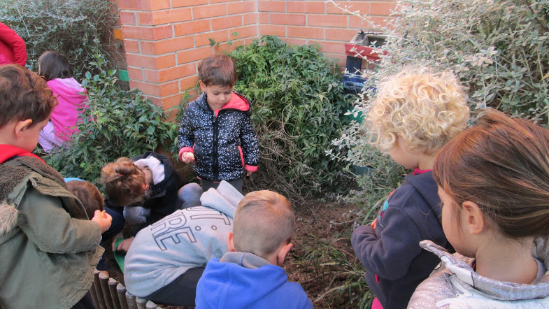 P3 som els encarregats de cuidar del jardinet de l’escola. Avui amb els nens i nenes de 1r B hem