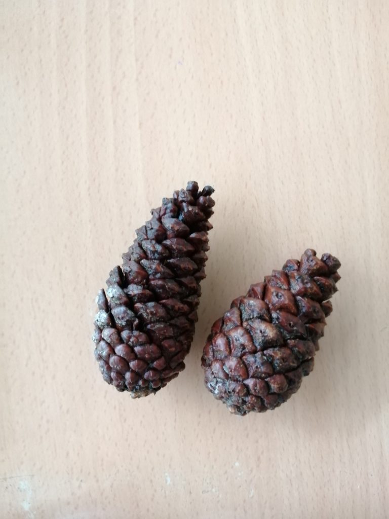 Aquest matí, la classe de les flors, hem fet un EXPERIMENT AMB PINYES. La Isabel ha agafat unes pinyes ben