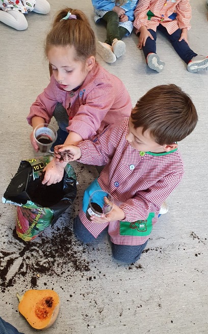 Aprofitant que tenim carbasses a la classe i que la Isabel ens ha explicat el conte El jardí d’en Bernat,