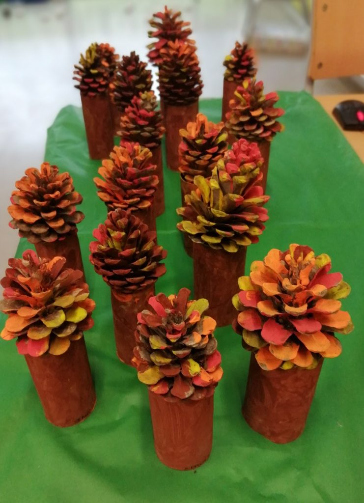 A la classe de les pinyes hem descobert que les pinyes cauen dels pins a la tardor i, mica en