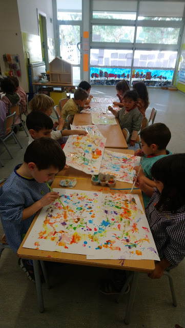 AQUESTA TARDA HEM PINTAT AMB CANYES DE PLÀSTIC. EN EL PAPER HEM POSAT PINTURA AMB MOLTA AIGUA I TOT BUFANT