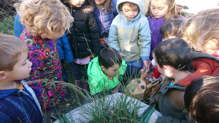 Tot tornant del pont de desembre els nens i nenes de P4 vam sortir a buscar el tió. S’havia amagat