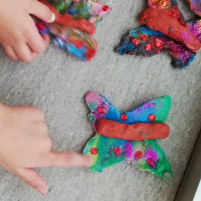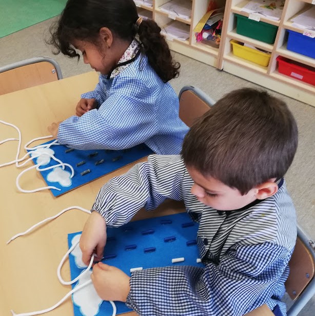 Com cada divendres les papallones hem anat al bosc. Avui abans de jugar, hem estat una estona treballant la geometria.