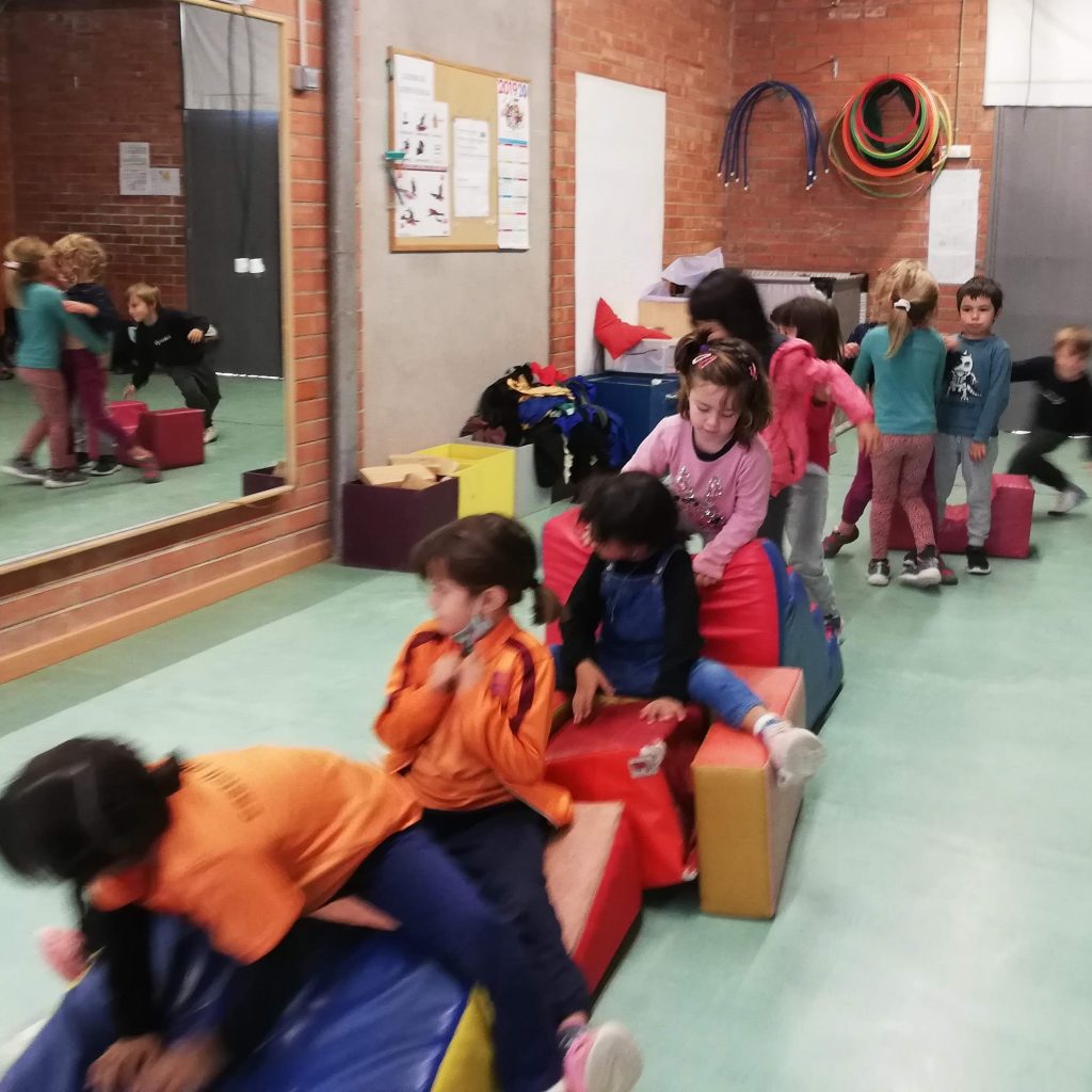 Avui dijous hem anat al gimnàs de l’escola per fer psicomotricitat. Allà hi havia un circuit amb peces toves, de