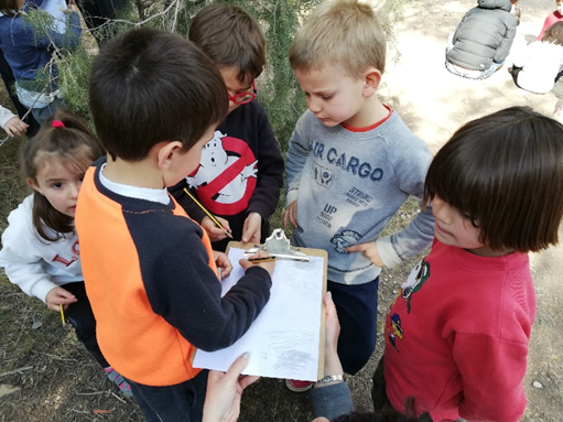 Els infants de P5 A i B han anat a calcar l’escorça dels arbres del bosc.