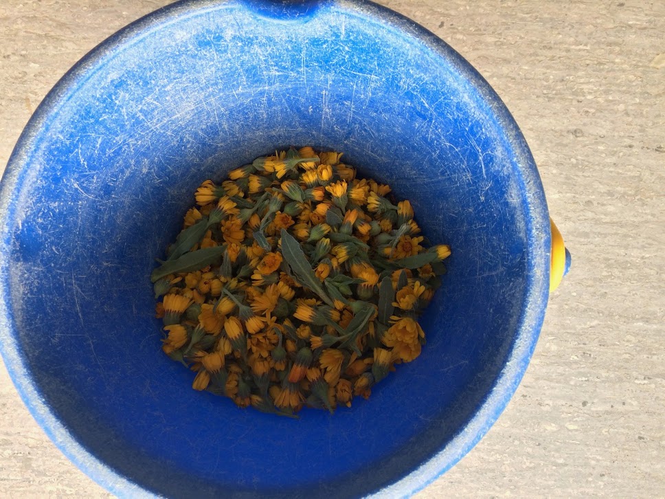 Per preparar oli de Calèndula (Calendula officinalis) utilitzarem únicament les flors d’aquesta planta, preferentment seques i les anirem introduint en