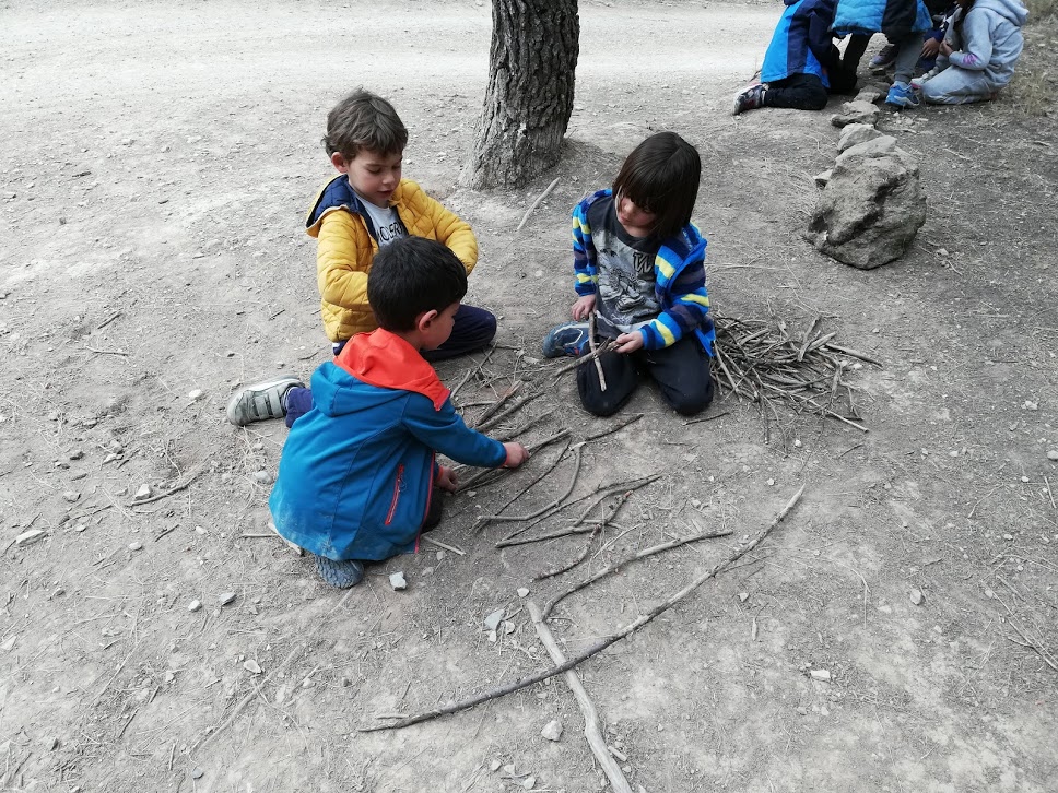 Ahir els infants de P5 vam anar al bosc a aprendre alguns conceptes matemàtics a través de la classificació, de