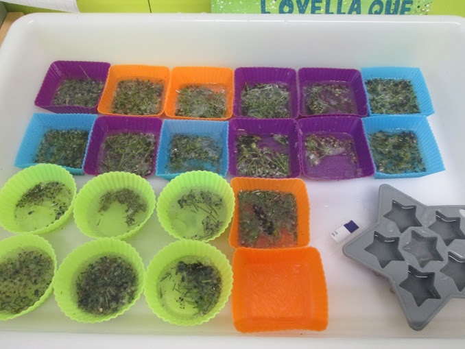 Aquest matí hem fet sabons. Hem triat uns motlles, hem tallat les plantes aromàtiques que cadascú ha a triat i
