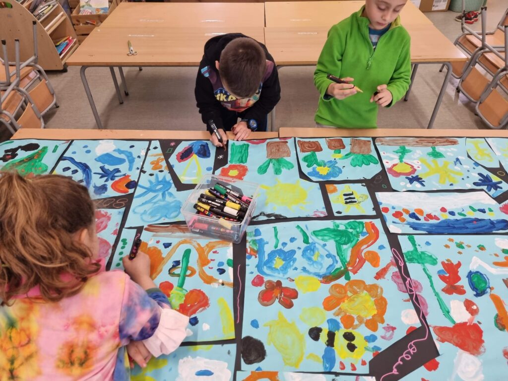 Ahir els infants de la classe de les formigues van pintar un mural al so de la primavera de Vivaldi.