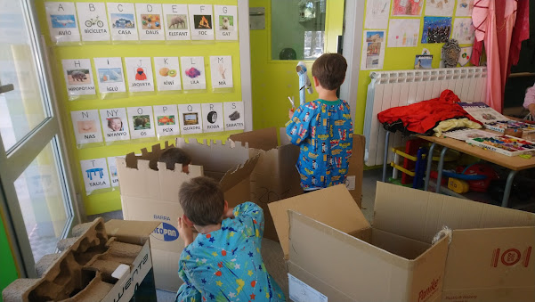 A la classe teníem moltes capses i tubs de diferents mides. I avui ha sigut el dia de construir lliurement