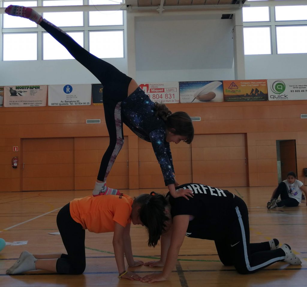 Aquest final de curs els alumnes de cicle superior han realitzat la unitat didàctica de l’acroesport. Una modalitat on han treballat la força, la flexibilitat i la resistència, juntament amb la cooperació i el companyerisme per tal que les figures sortissin correctament. També han après com han de col·locar les mans i els braços per suportar el pes del company i on han de col·locar els peus per tal de no fer mal al company que aguanta el nostre pes.