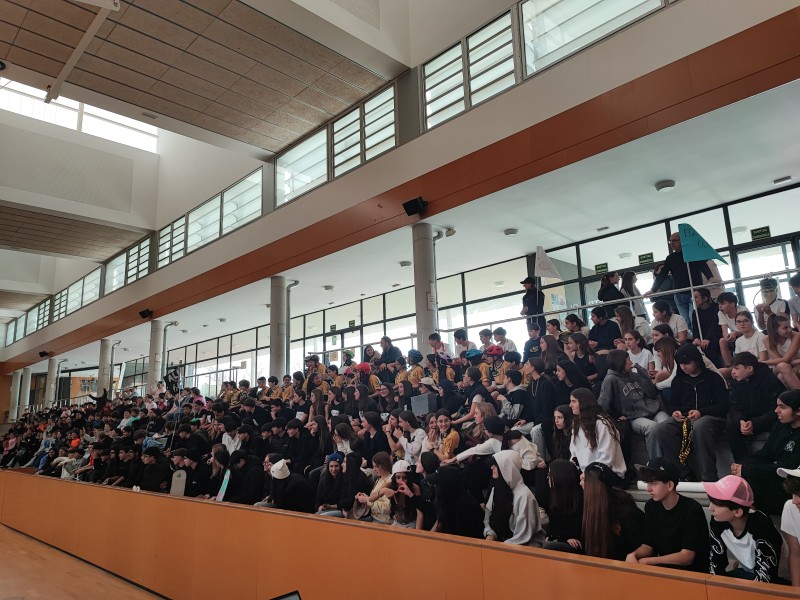 Després de l’hora del pati, els estudiants de secundària es van dirigir al poliesportiu del poble. Allà, l’alumnat de primària els esperava per veure les actuacions de cada grup classe d’ESO. Els delegats de primària van actuar com a jurat per votar les categories de millor disfressa i coreografia, i la disfressa més original.