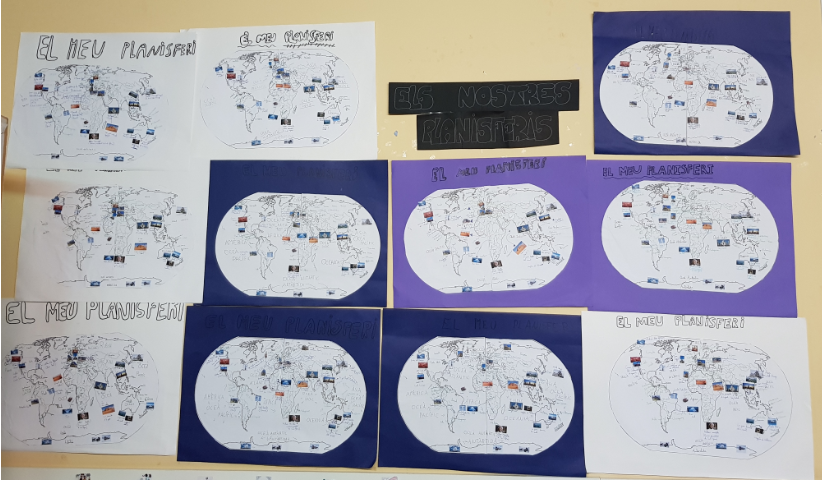 Els alumnes de 4t de primària a través del projecte ” Les orenetes cap a on van? Visió general del món” estudiem geografia amb l’anàlisi de diferents mapes (físics i polítics) relacionats amb el planeta Terra. Per això, un dels treballs realitzats és l’elaboració del propi planisferi individual on hi situem: els 6 continents, els 5 oceans, països i monuments emblemàtics de diferents regions. Els nostres planisferis estan exposats davant del teatrí, a 4t A. Convidem a tothom a veure’ls i repassar geografia amb nosaltres!