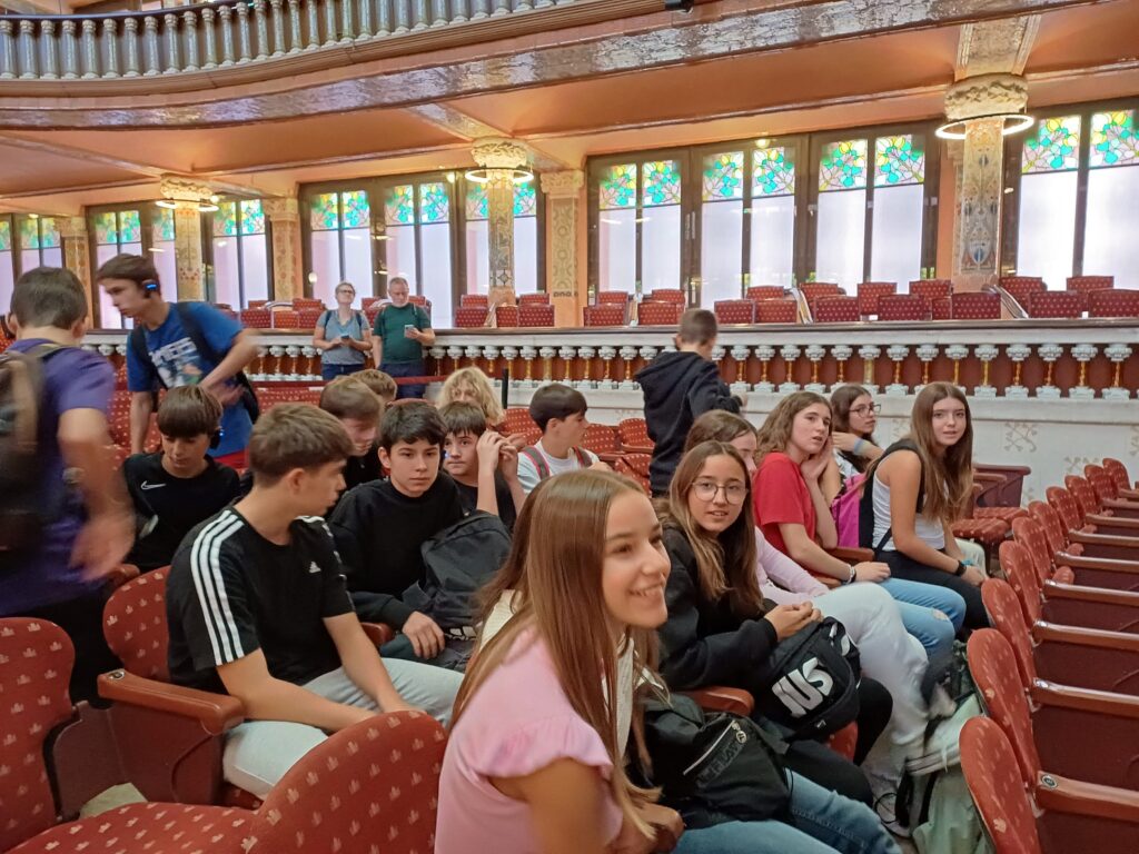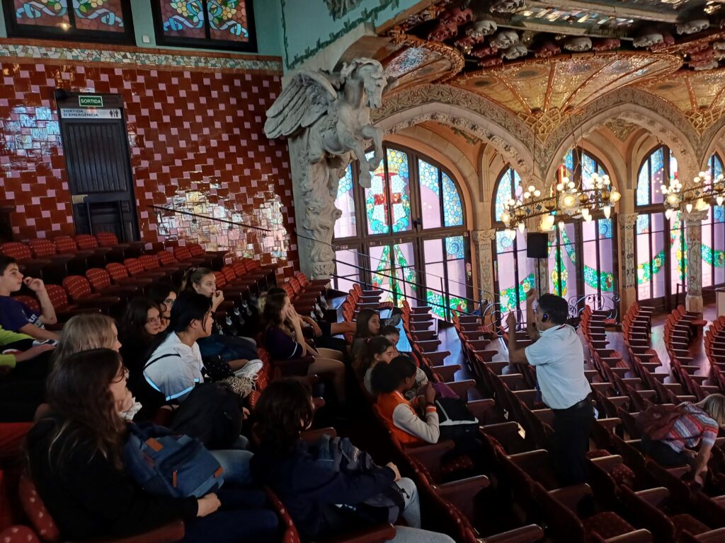 Durant la seva estada, l’alumnat va poder seure, contemplar i disfrutar de l’excepcional sala de concerts, i va fer un recorregut a peu per la resta d’instal·lacions, on va conèixer la història del Palau de la Música i algunes anècdotes divertides i interessants.
