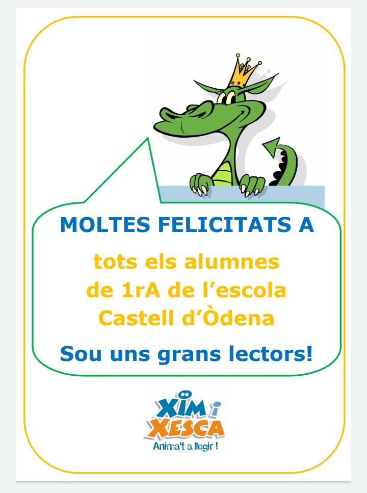 Des de la plataforma Xim-i-Xesca ens han fet arribar una felicitació per als nens i nenes de 1r A perquè