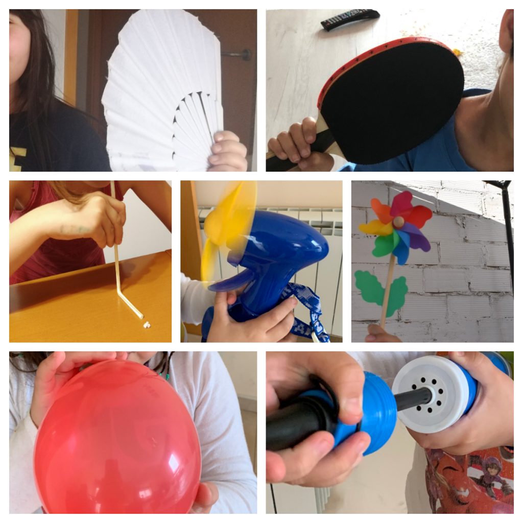 Els nens i nenes de 1r ens hem posat a averiguar quines maneres podem fer aire, perquè el llop diu