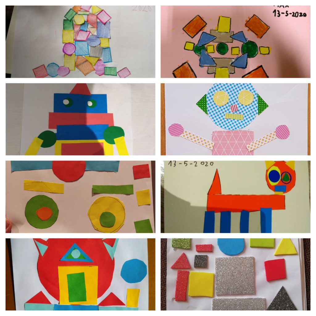 Els nens i nenes de 1r hem fet unes composicions amb figures geomètriques relacionat amb les formes geomètriques de coses