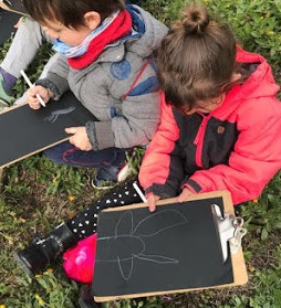 Les nenes i els nens de P4 hem aprofitat la sortida setmanal al bosc per a dibuixar un ametller florit,