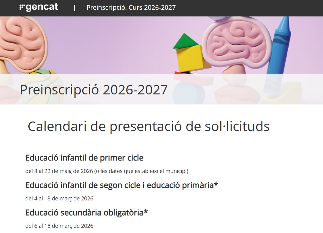 ATENCIÓ FAMÍLIES, AQUESTES SÓN LES DATES DE LES PREINSCRIPCIONS. L’ALUMNAT QUE JA FORMA PART DEL CENTRE NO HA DE FER CAP TRÀMIT!