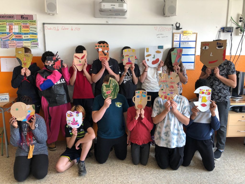 Avui és el gran dia, es Carnaval, i abans de disfressar-nos hem fet un taller de creació de màscares.Ens hem inspirat en Kimi Cantrell, un artista que crea obres d’art amb argila inspirades en l’art africà.Nosaltres les hem fet amb cartró, paper de seda, ceres i retoladors, el resultat ha estat genial, no creieu?