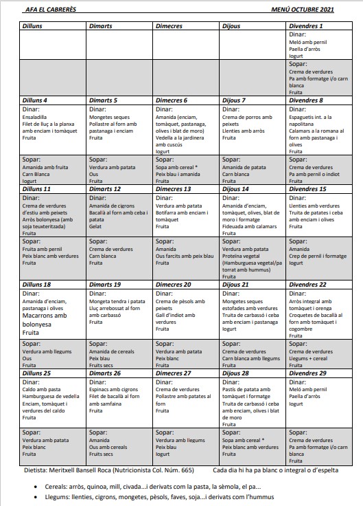 Aquí us passem el segon menú de la temporada! Bon profit! Menú d’octubre versió per imprimir