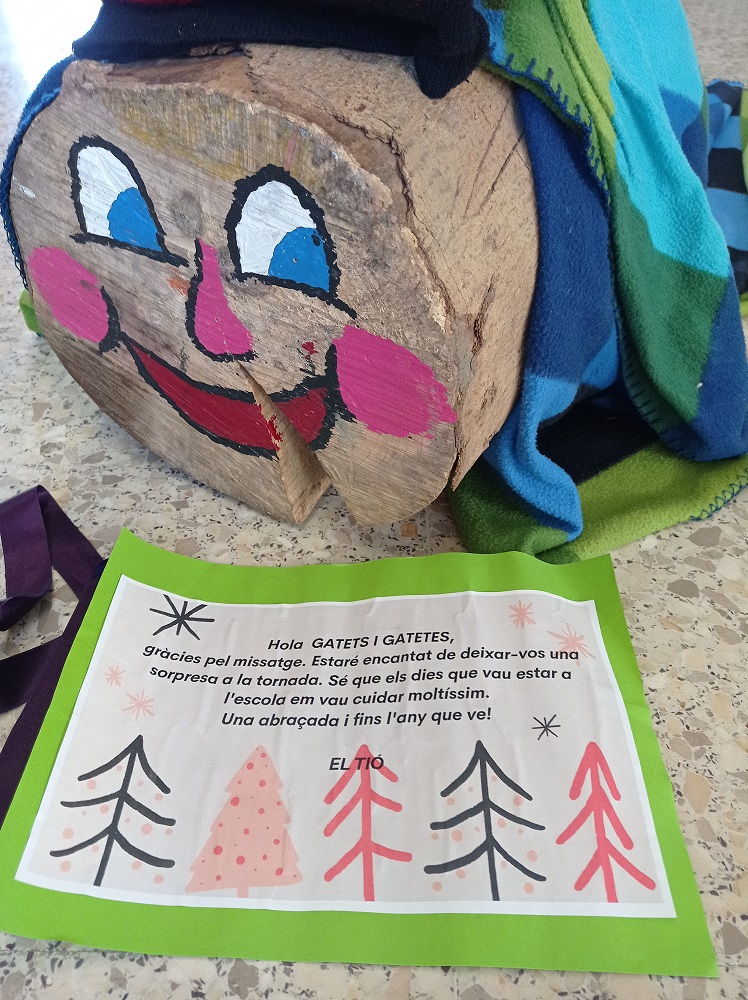 Aquest matí, en Simó i la Valentina li han escrit una carta al Tió demanant-li que s’esperi uns dies més a cagar els regals per la classe de Segon. Ens ha contestat que l’heu cuidat tan bé aquests dies que éreu a l’escola que us deixarà una sorpresa per quan torneu.