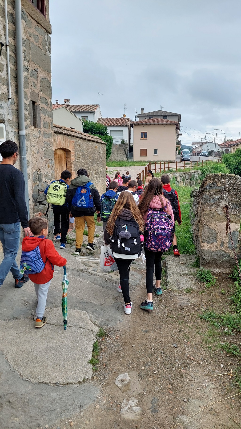 Els nens i nens d’escola, acompanyats per algunes famílies, s’han reunit a diferents punts de l’Esquirol i Cantonigròs i han anat caminant plegats fins a la parada de l’autobús o l’escola.