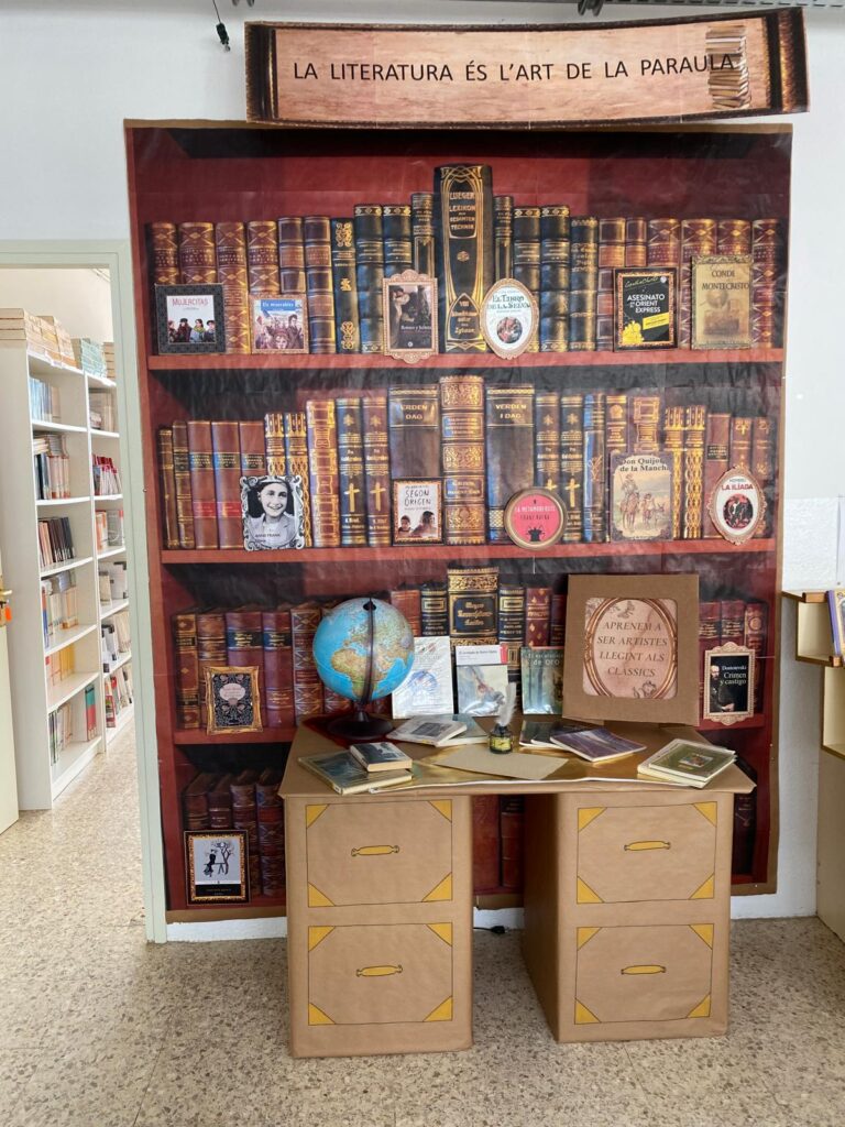 Ja fa uns quants anys que des de la Comissió Biblioteca, fins l’any passat liderada per la Fina Cabanas, es fan decoracions temàtiques per incentivar l’hàbit lector i picar la curiositat dels infants per descobrir noves aventures lectores. Per això, cada dos mesos, l’entrada de la biblioteca llueix una decoració diferent. De vegades té a veure amb l’època de l’any, com la decoració nadalenca que veureu en una d’aquestes imatges, en altres ocasions, s’escull una temàtica, com els còmics o els llibres que ja han esdevingut clàssics, o bé es tria un autor per donar-lo a conèixer, com ara, el Petit Príncep de Antoine de Saint-Exupéry. A continuació trobareu un recull d’algunes de les decoracions temàtiques que hi ha hagut a l’entrada de la biblioteca aquests últims cursos.
