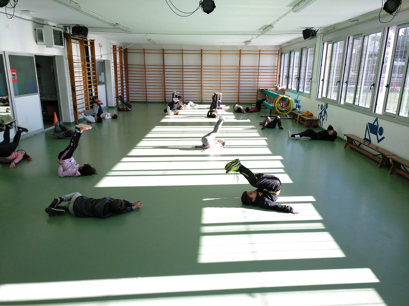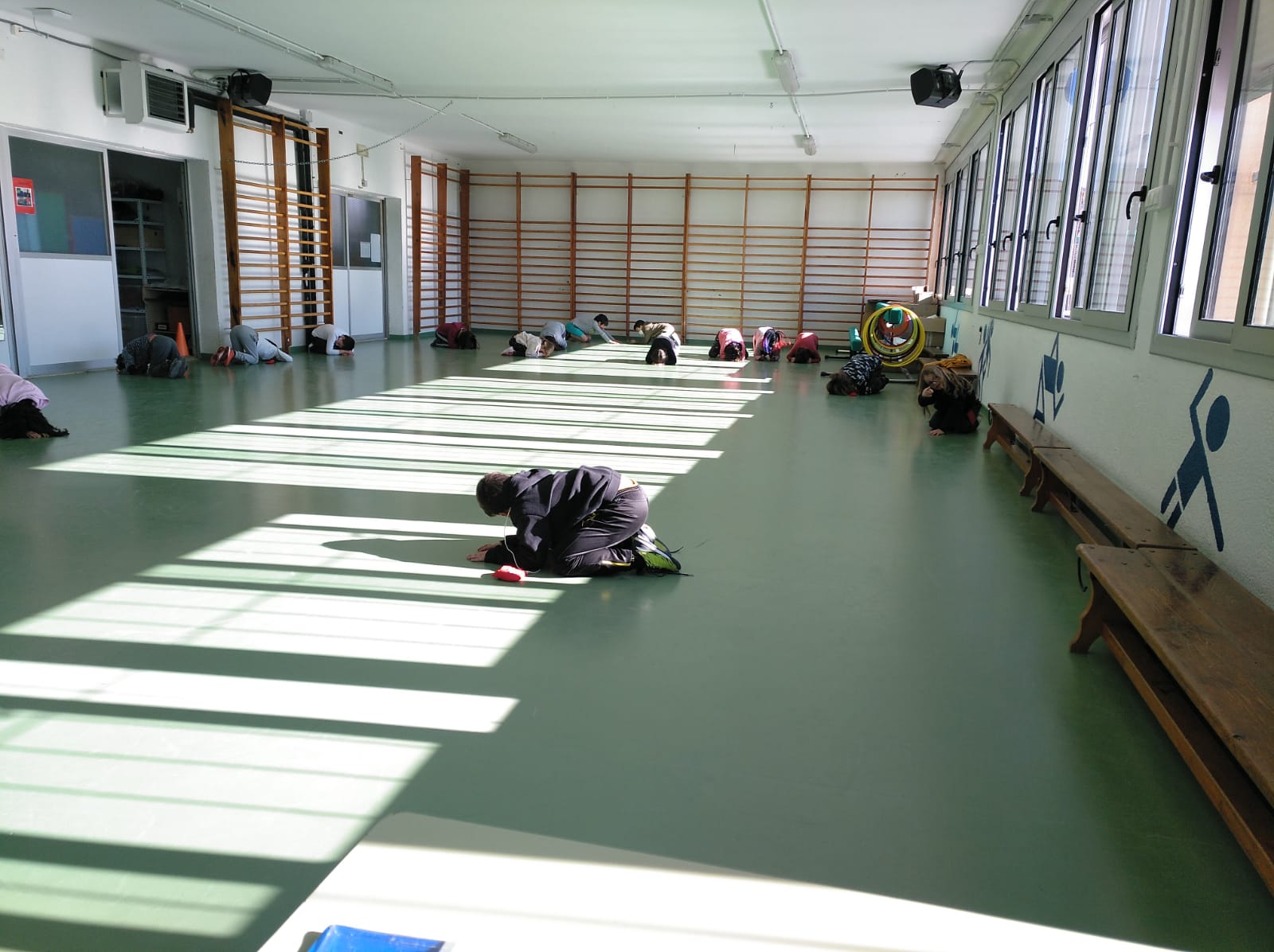 Avui entrem al gimnàs per veure els estiraments que fem a les sessions d’Educació Física.