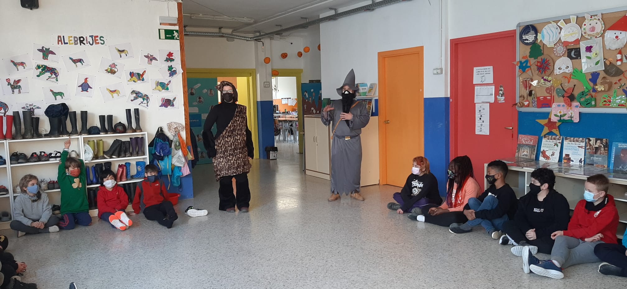 Aquest dimecres al matí van aparèixer a l’escola tres personatges ben estranys: una bella princesa, un druida i una dona del paleolític!
