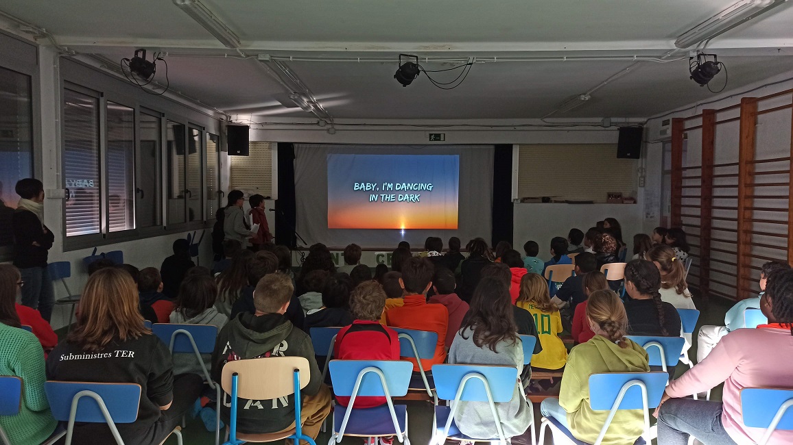 Vam fer un karaoke per santa Cecília i totes les classes vam baixar a l’escenari i van cantar.