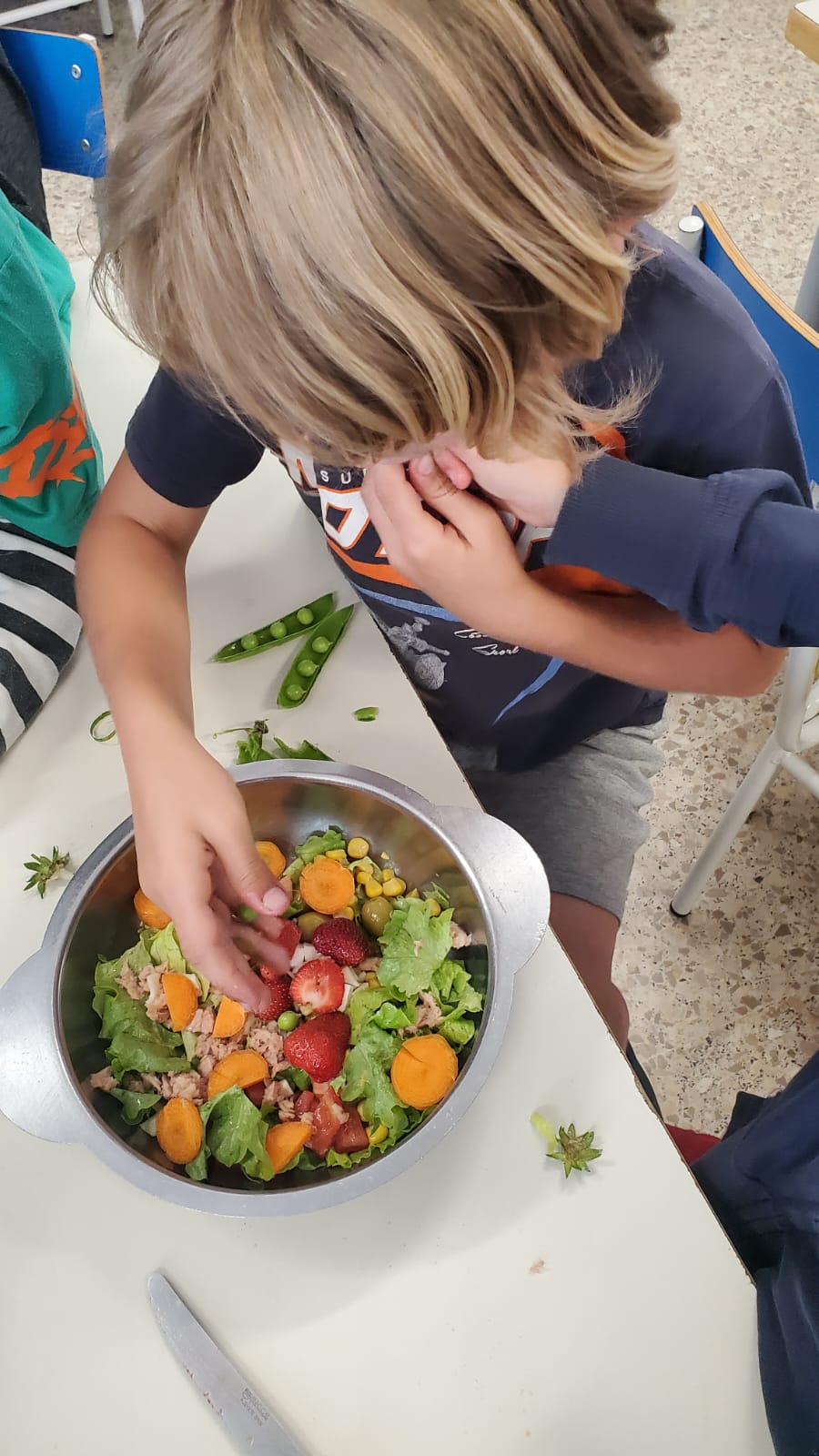 Ahir va ser un gran dia; després d’uns mesos cuidant l’hort amb molt d’afecte, hem pogut gaudir d’uns quants productes elaborant les nostres pròpies amanides que ens hem menjat a l’hora del menjador. Hem collit i netejat els enciams, pèsols, api, pastanagues, maduixes, fulles de menta, cebes tendres… i hem elaborat unes amanides que prèviament havíem dissenyat en grup. Us deixem les receptes en aquest enllaç: RECEPTES DE LES AMANIDES. L’experiència ha sigut tot un èxit i des de menjador ens han dit que no ha sobrat res de res! Que aprofiti!!