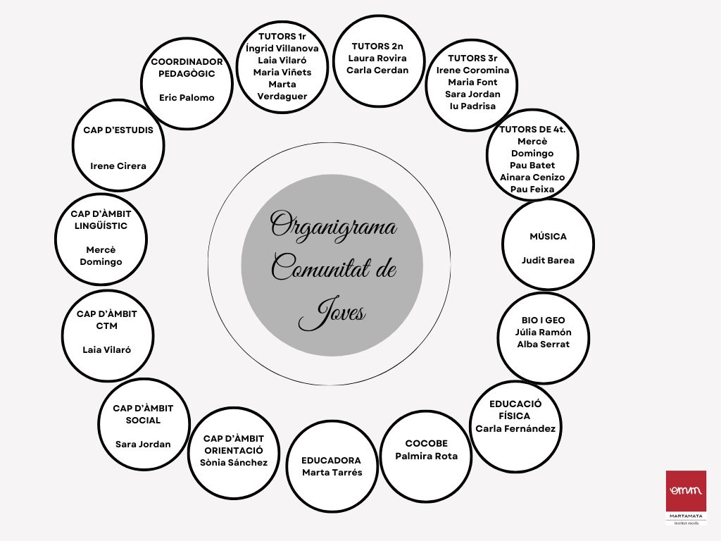 A més, els professors també s’organitzen per àmbits per tal de consensuar aspectes generals al llarg de l’etapa.