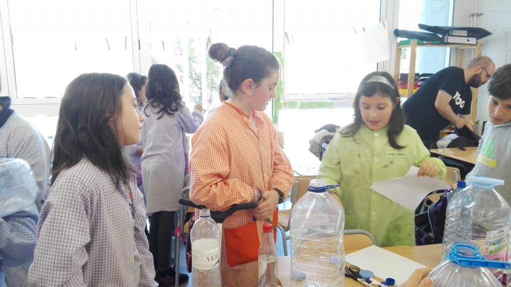Tot seguit, ens han proposat diversos reptes i hem fet un taller de creació del nostre propi invent a partir de materials reciclables i per a donar solució a la proposta que ens feien.